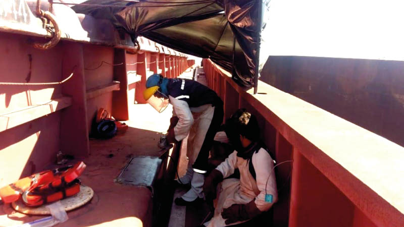 Alistamiento de barcazas: reparaciones en soldadura. Limpieza de barcazas, fumigaciones, achique desagote de cofferdams, piques y bodegas.